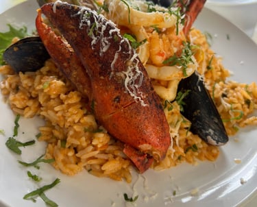 Savory Peruvian-style seafood paella, bursting with ocean flavors and aromatic spices.